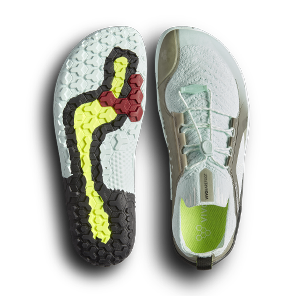 The Primus Trail Knit FG is an upgraded version of the original and bestselling Primus Trail FG trail-running sneaker from Vivo. Its knit upper, made from recycled materials, offers improved breathability and increased mobility on trails. The sock-like design effectively keeps out debris while the shoe is suitable for trail running, fastpacking, and hiking. Its low profile and versatility have made it a popular choice among outdoor enthusiasts. The knit upper and sock provide flexibility and protection, while the quick-lace system allows for easy adjustments. The thin Firm Ground sole allows for a barefoot sensation and offers grip on various hardpack terrain, helping to build natural strength with each step.