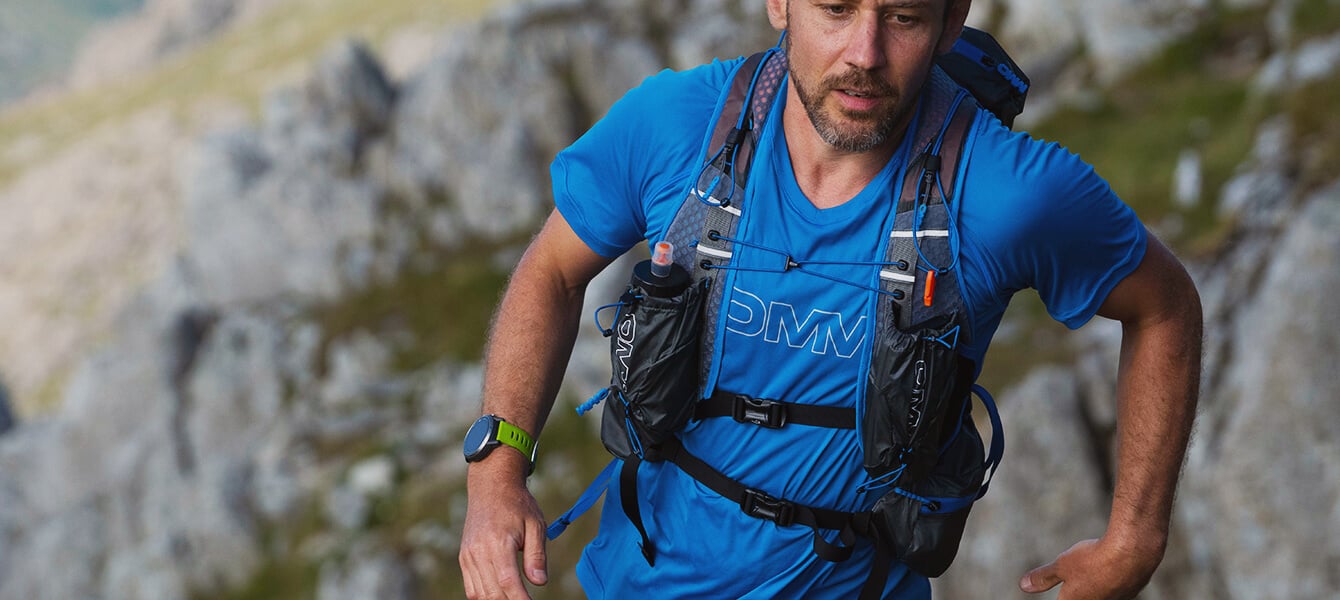Stabilised around your spine, OMM's unique yoke-style harness connects the pack with the runner’s spine at 7-points, providing an incredibly comfortable and balanced carry. The yoke harness also frees the shoulders to enable a more natural and energy efficient arm swing. The V-shaped belt hugs the waist securely minimising bounce, even when running hard on uneven ground.