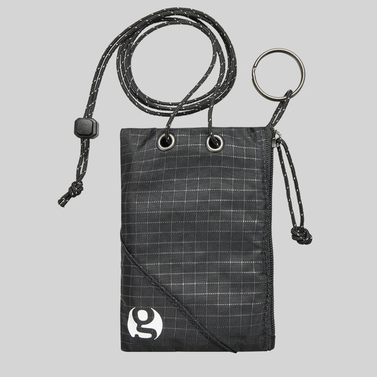 This compact zippered wallet can be worn as a practical necklace or a stylish cross-body accessory. It features a ring on the lanyard to keep your keys handy and easy to locate. Crafted from leftover fabric used in our pack production, this wallet supports sustainability by promoting reuse and reducing waste.