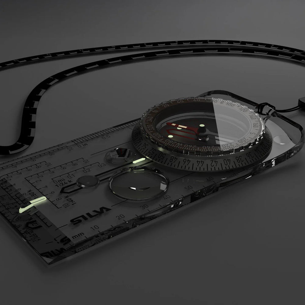 The Compass 3E offers several features that enhance navigation accuracy. It has an extended base plate with silicone feet, a liquid-filled compass housing with a sapphire jewel bearing, and a reliable high-quality steel needle. Like all of Silva's outdoor compasses, the Compass 3E features red and black north lines in the compass housing for an easy and secure setting. The compass's magnifying lens enables detailed map reading, while the luminous markings enable night navigation.