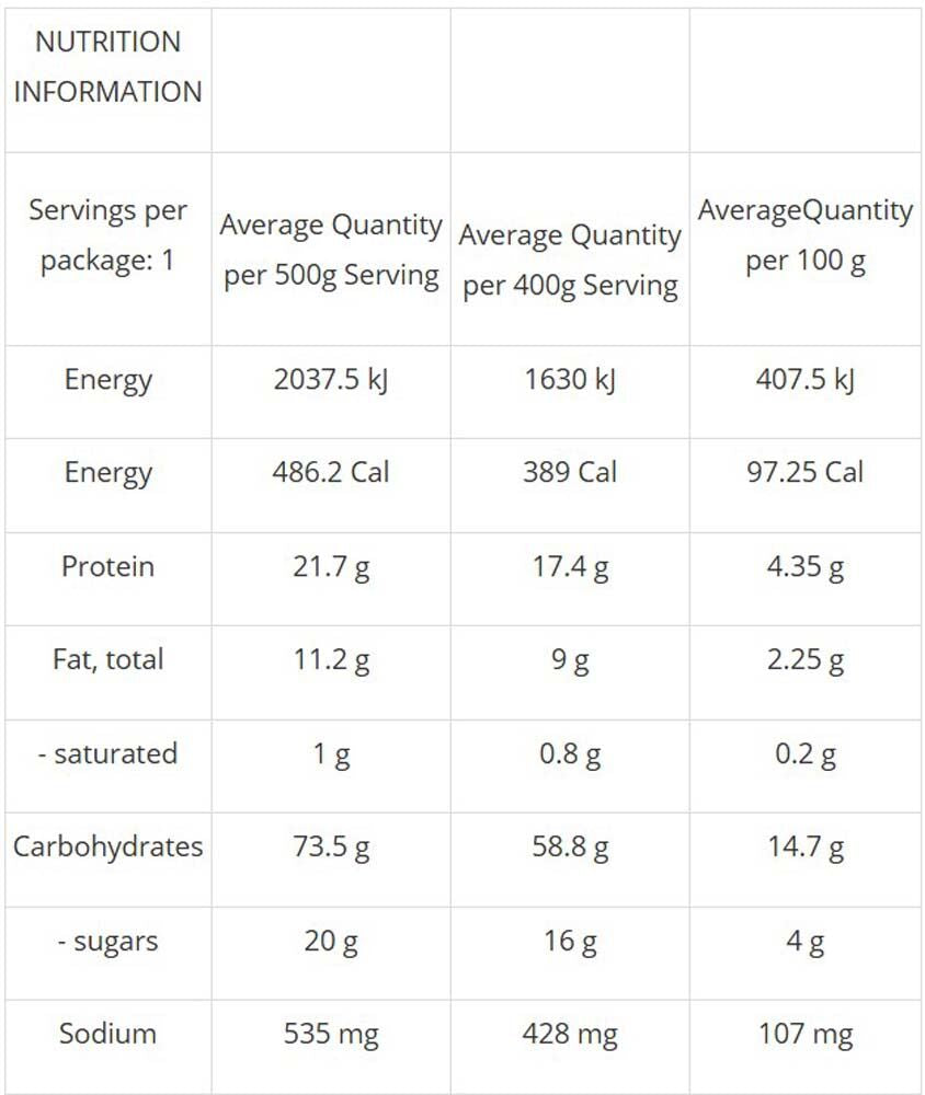 - May contain peanuts, tree nuts, milk, eggs, sesame seeds, soy, gluten, fish, crustacea, molluscs, and lupin.
